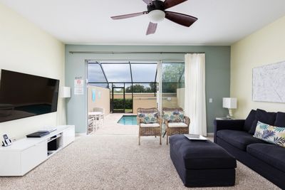 Kids books, DVD's and games are provided. Fully equipped kitchen. The home features it’s own screened-in lanai with a heated splash pool. Our home is a short walk to the large Olympic-sized community lagoon pool and waterslide at the clubhouse.
