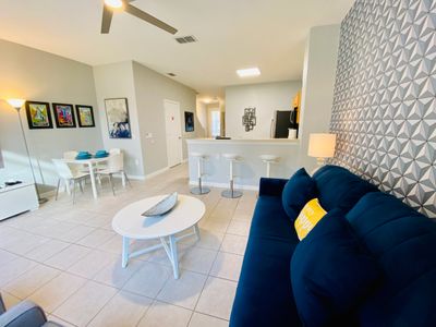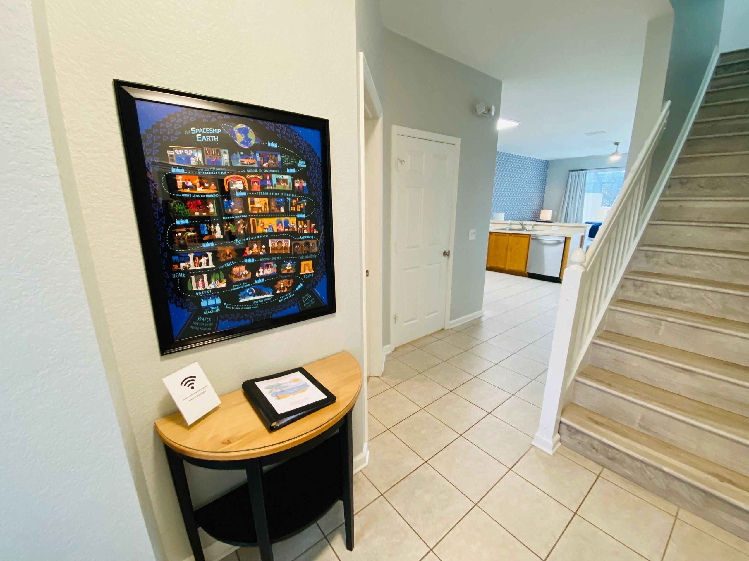 3-Bedroom Epcot themed home, each bedroom has its own connecting bath and you will be spoiled with 4 large Smart TVs. Each TV has an Xbox One with pre-loaded games on each! Not only will you be able to play multiple games and watch your favorite cable TV shows but you also will have the option to watch the hundreds of preloaded movies, watch Blue-Rays, or login to your own personal accounts on Amazon, Netflix and more. Free Wifi!!! There are also lots of board and card games and children books.